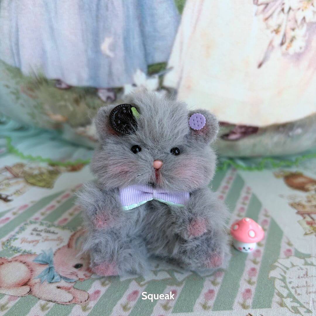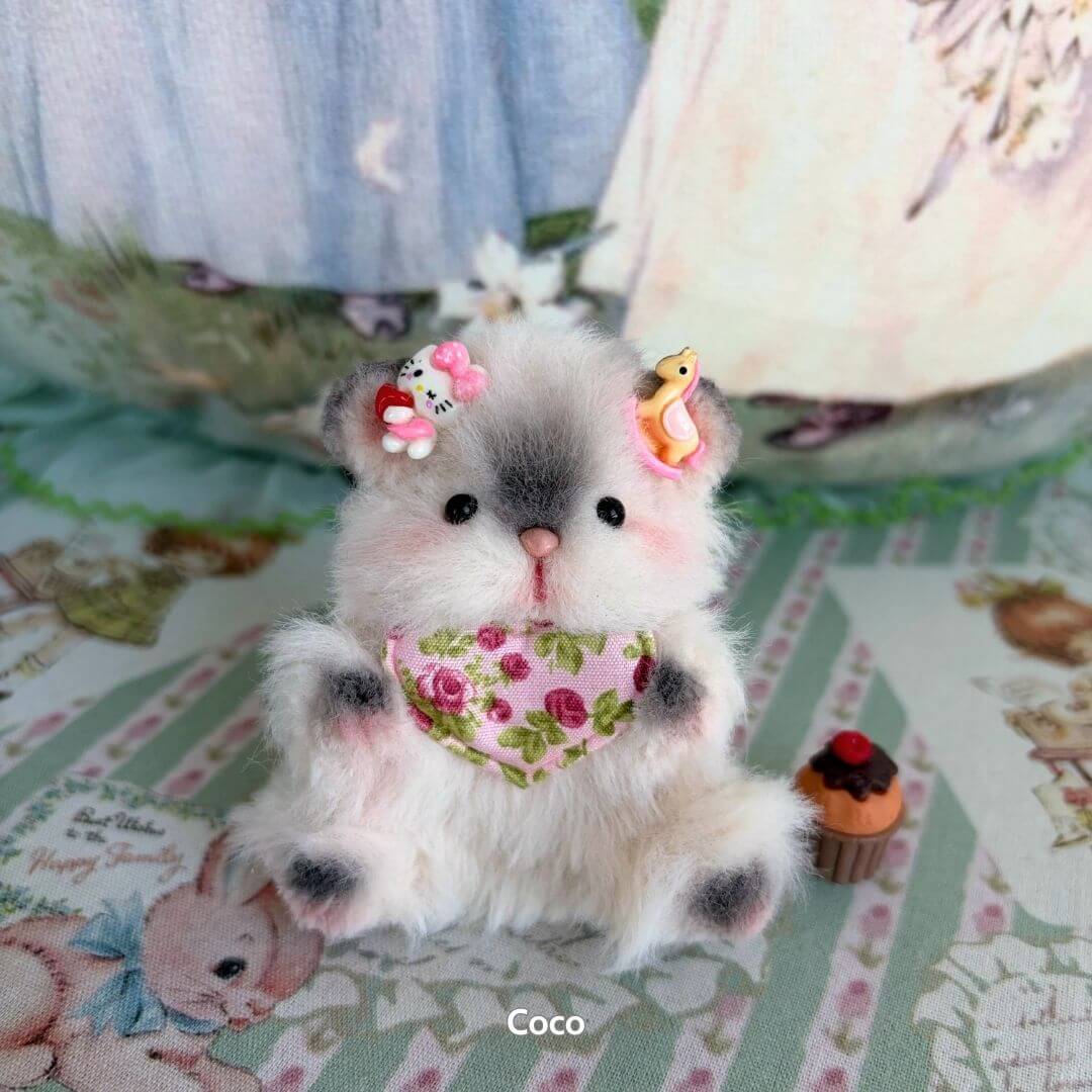 The Adorable Hamsters Collection brings tiny, round-bodied fluffballs to life. Each handmade hamster sits sweetly in a natural upright pose, crafted with soft faux fur and a flexible wire core that gives it its chubby charm.