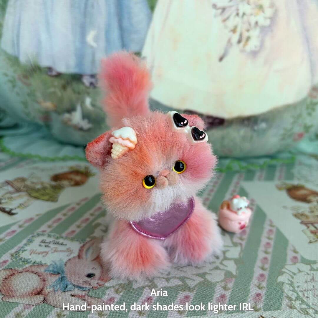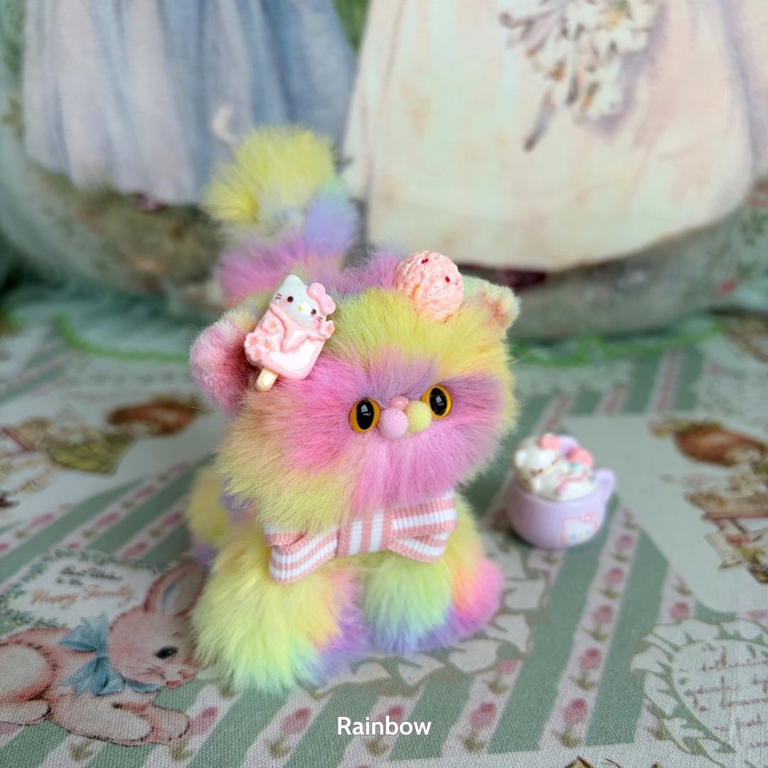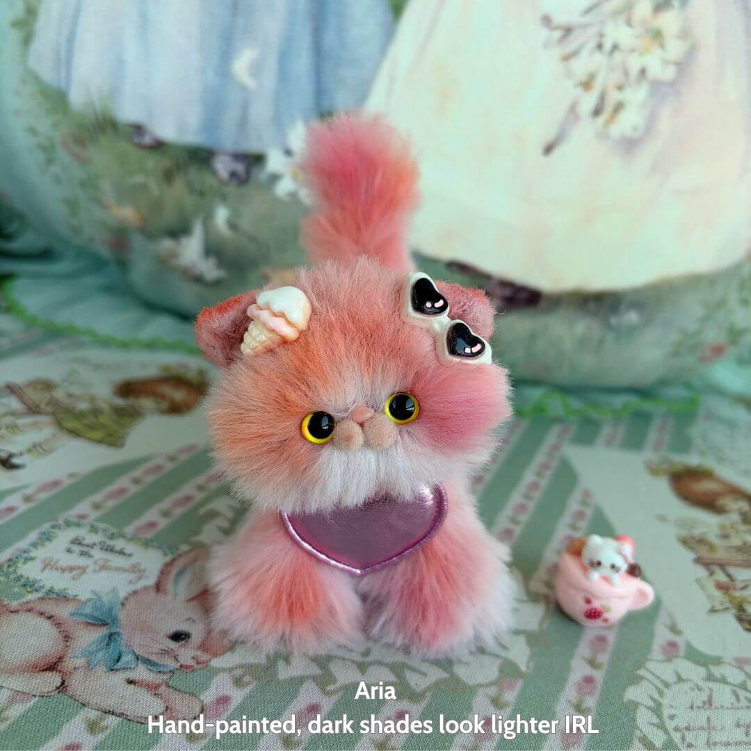 Each kitten is lovingly sculpted by hand using a soft faux fur finish and a flexible wire core, giving it lifelike posture and personality. From pastel rainbow styles to classic tones, no two kittens are alike.