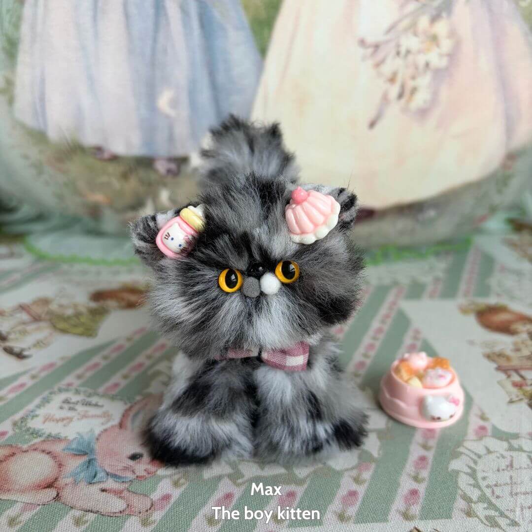 Discover the Adorable Kitten Collection – a series of one-of-a-kind handmade miniature cats inspired by beloved breeds like Chinchilla, Ragdoll, Himalayan, and Calico.