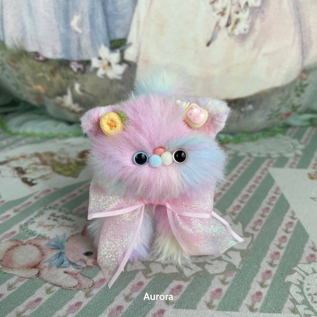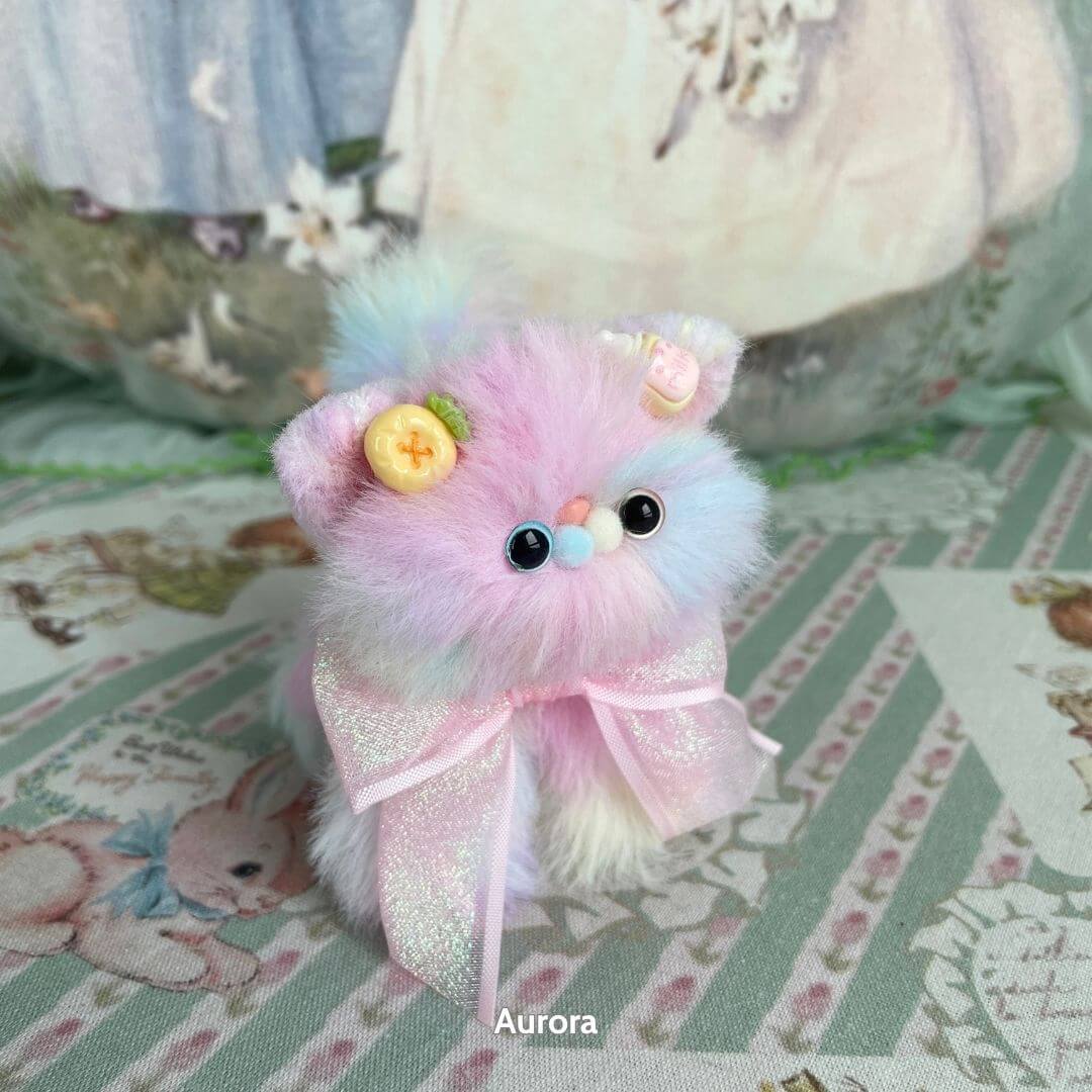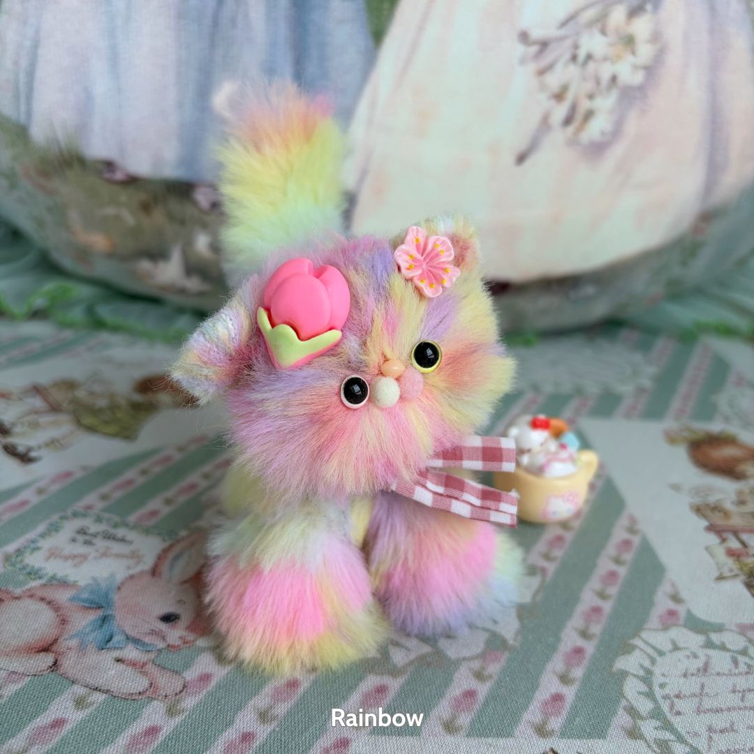 Each kitten is lovingly sculpted by hand using a soft faux fur finish and a flexible wire core, giving it lifelike posture and personality. From pastel rainbow styles to classic tones, no two kittens are alike.