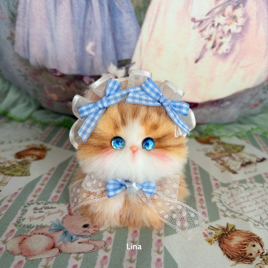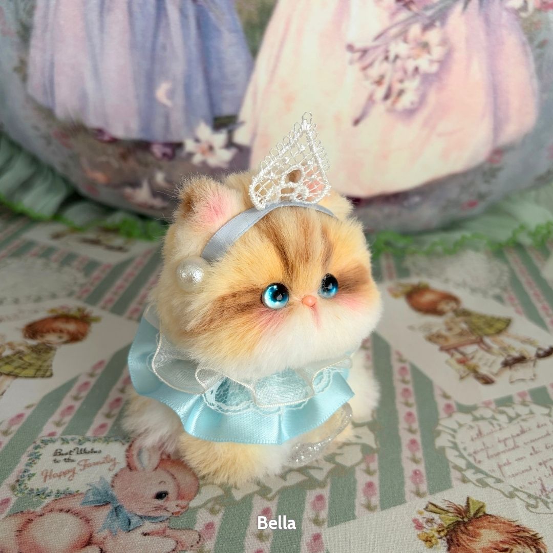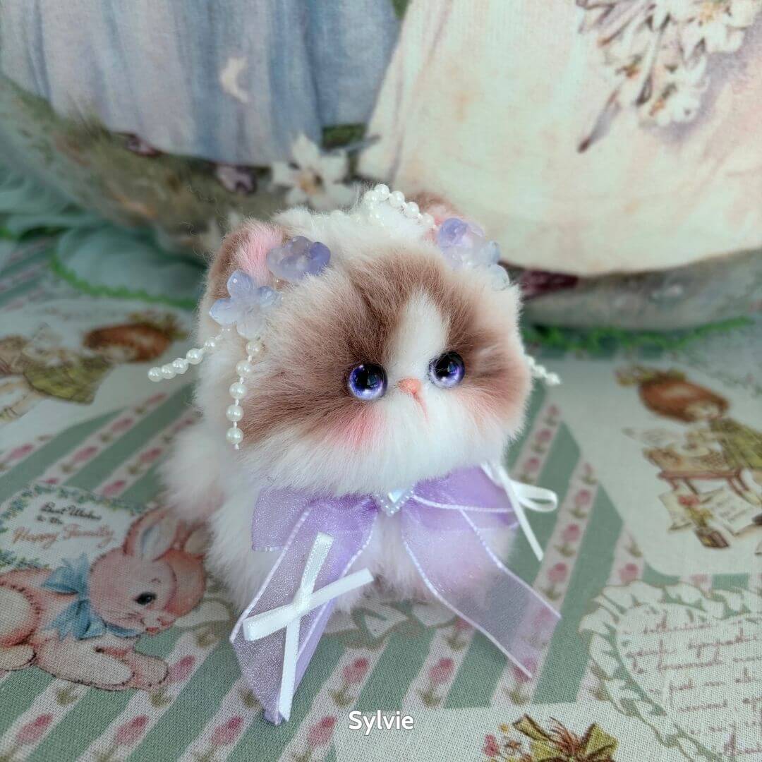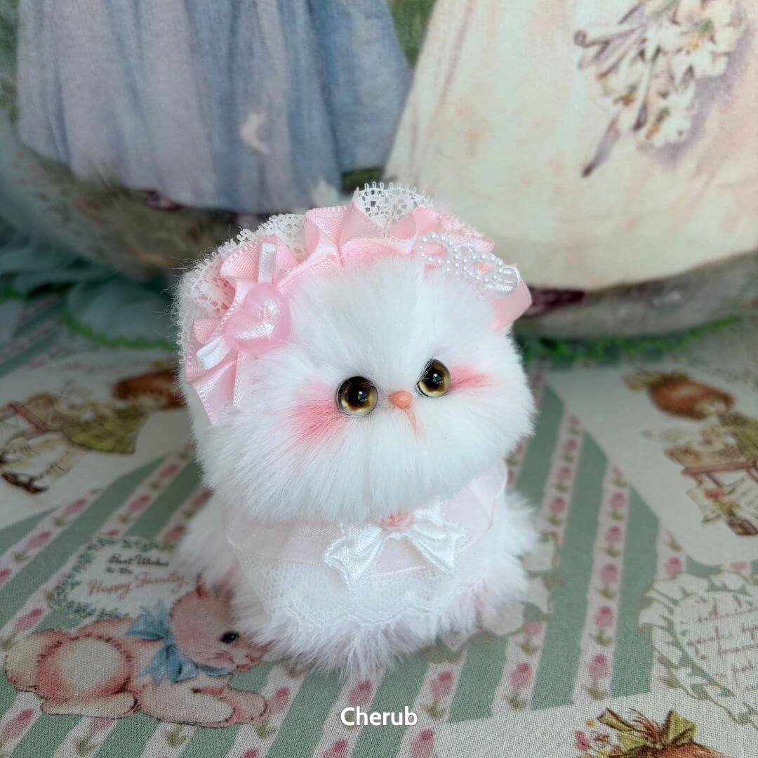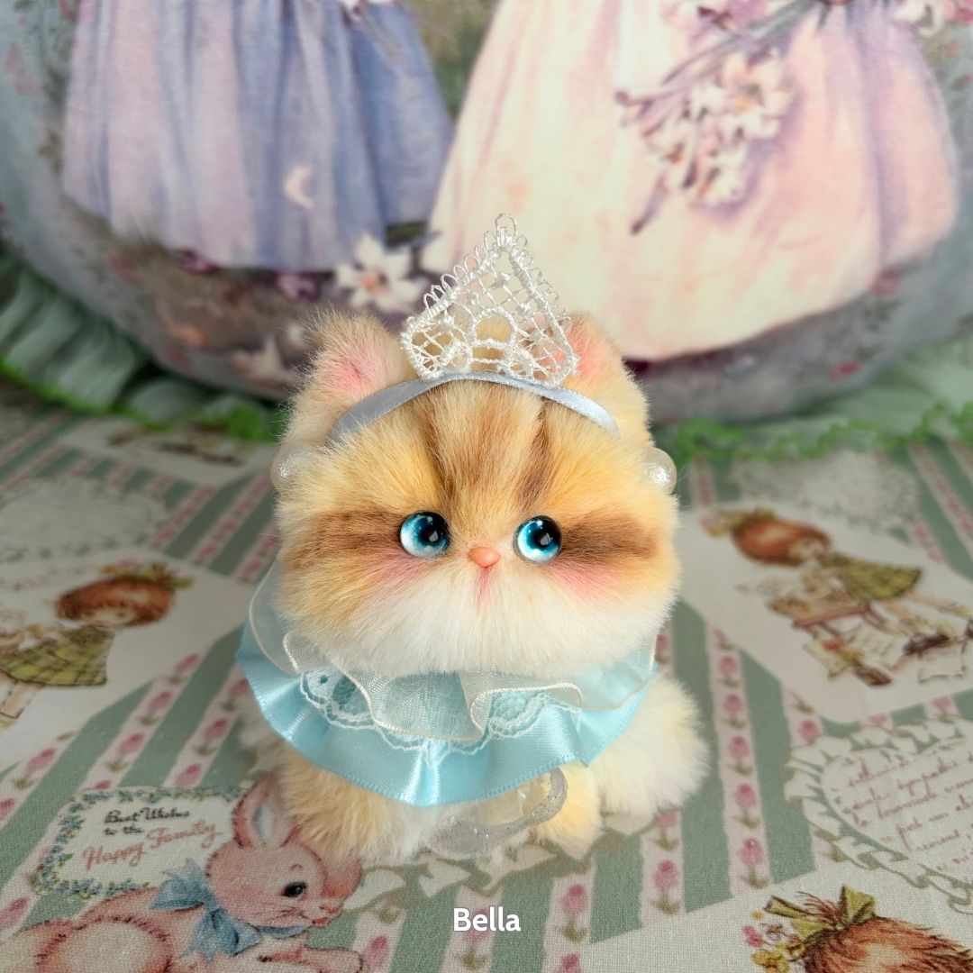 The Fairy Paws Collection is a gathering of kittens straight out of a magical meadow. Each one is handmade with soft faux fur, hand-painted blue eyes, and fairy tale accessories — from translucent wings and pearl collars to tiny spell bottles and star crowns.
