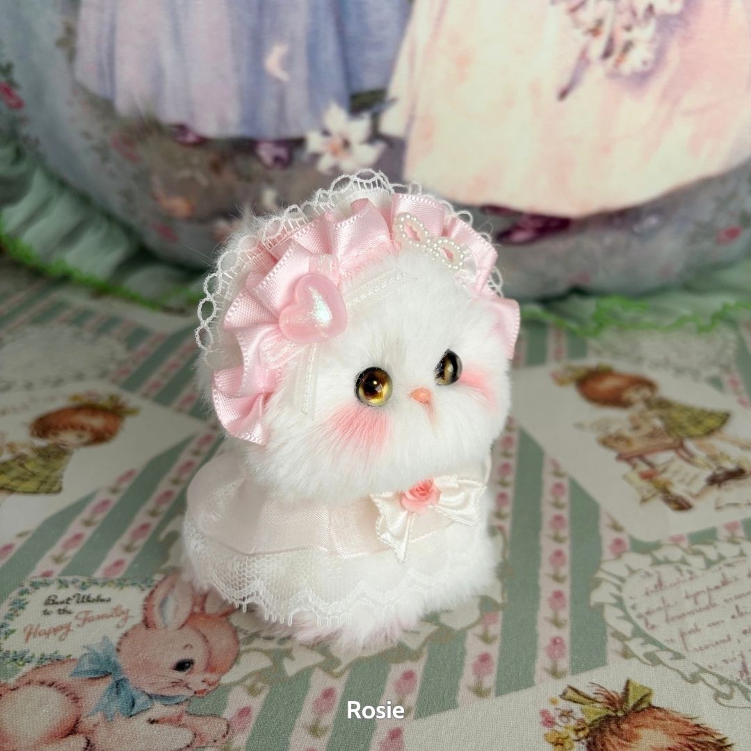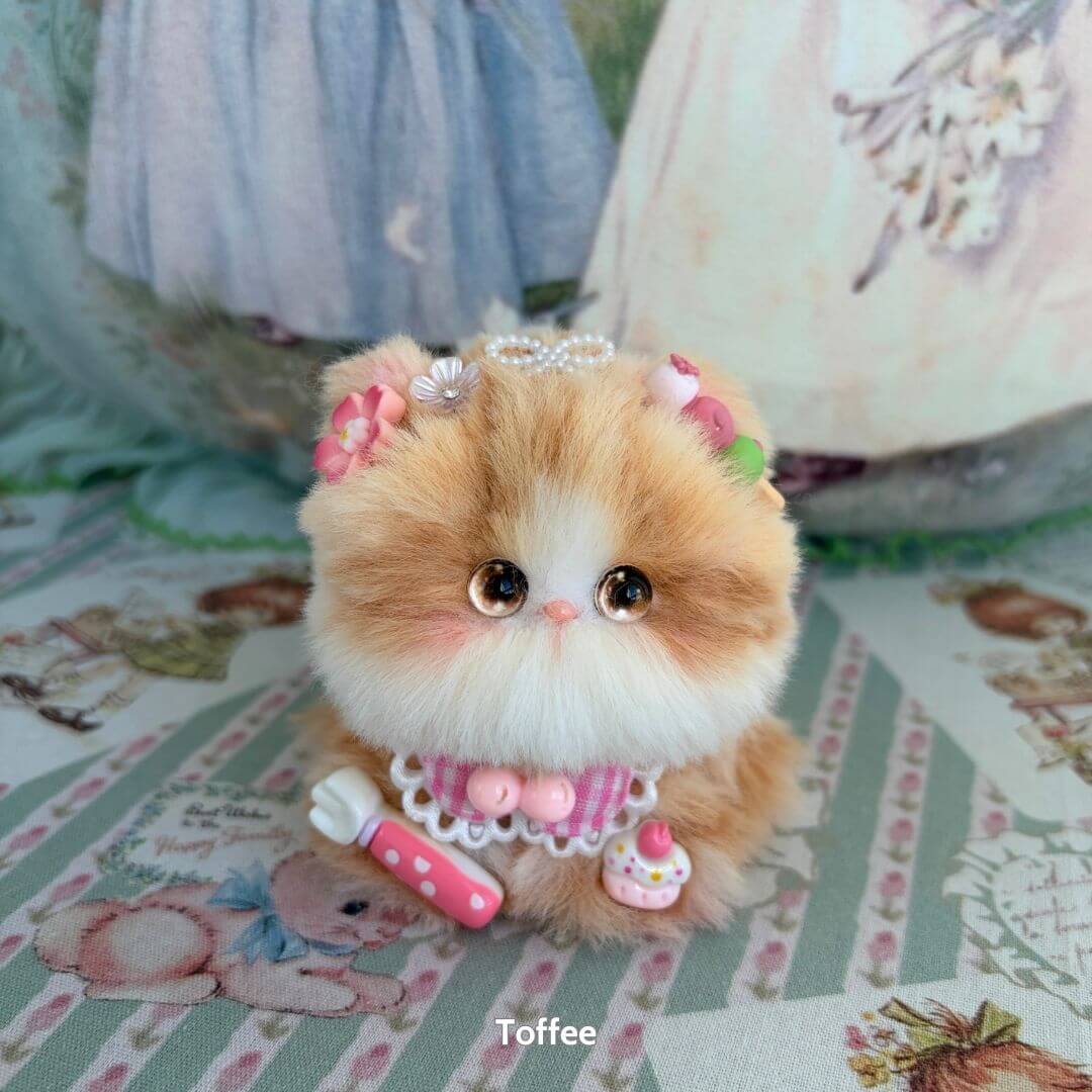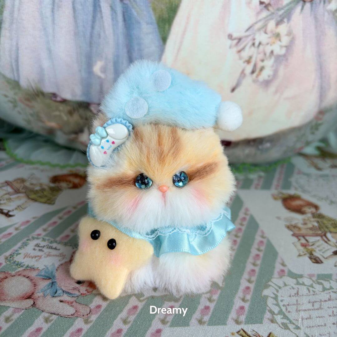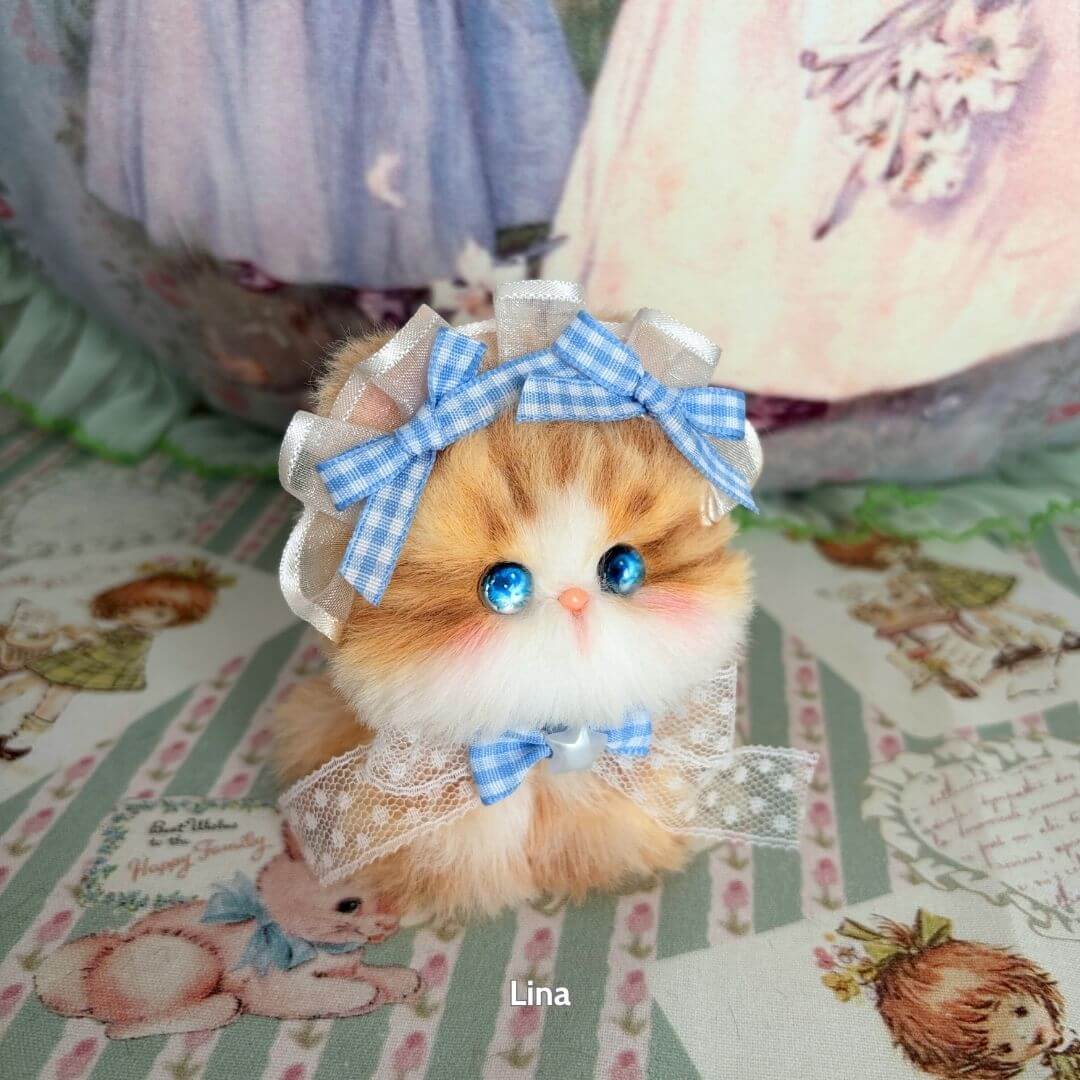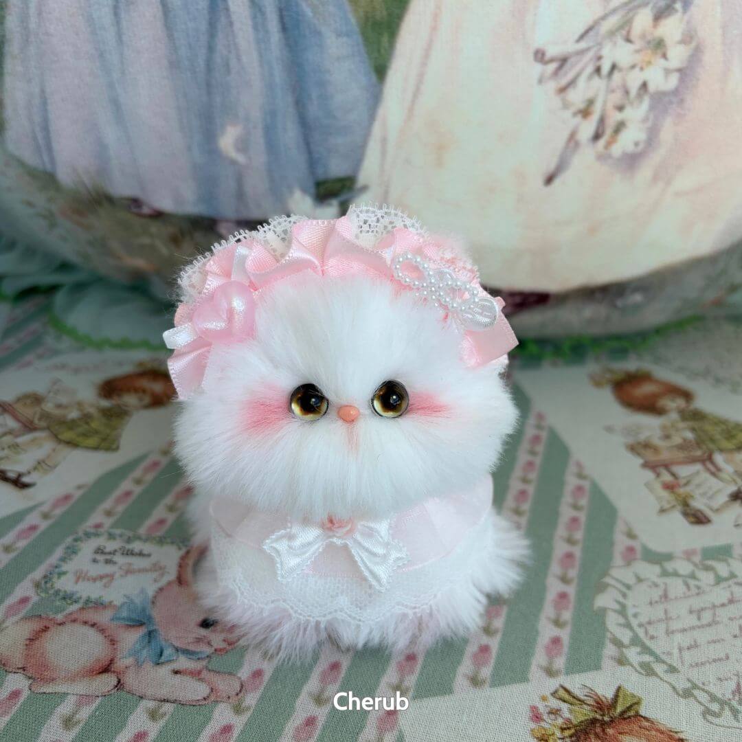 The Fairy Paws Collection is a gathering of kittens straight out of a magical meadow. Each one is handmade with soft faux fur, hand-painted blue eyes, and fairy tale accessories — from translucent wings and pearl collars to tiny spell bottles and star crowns.