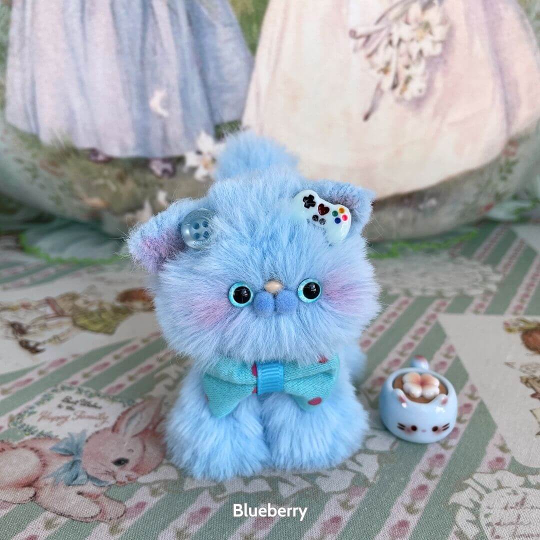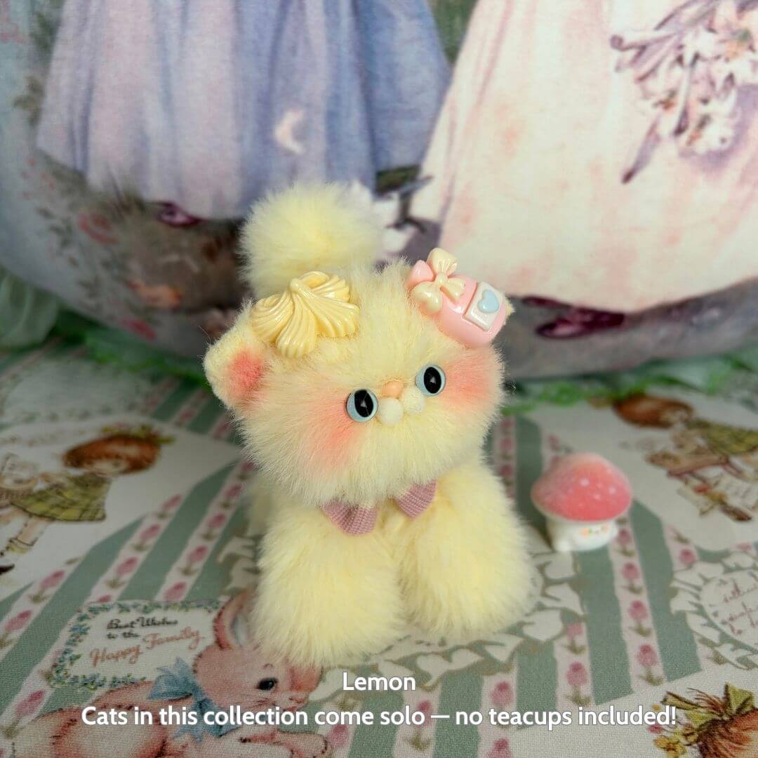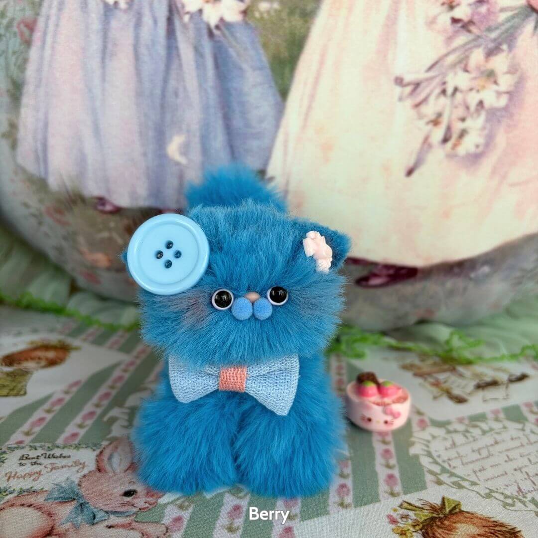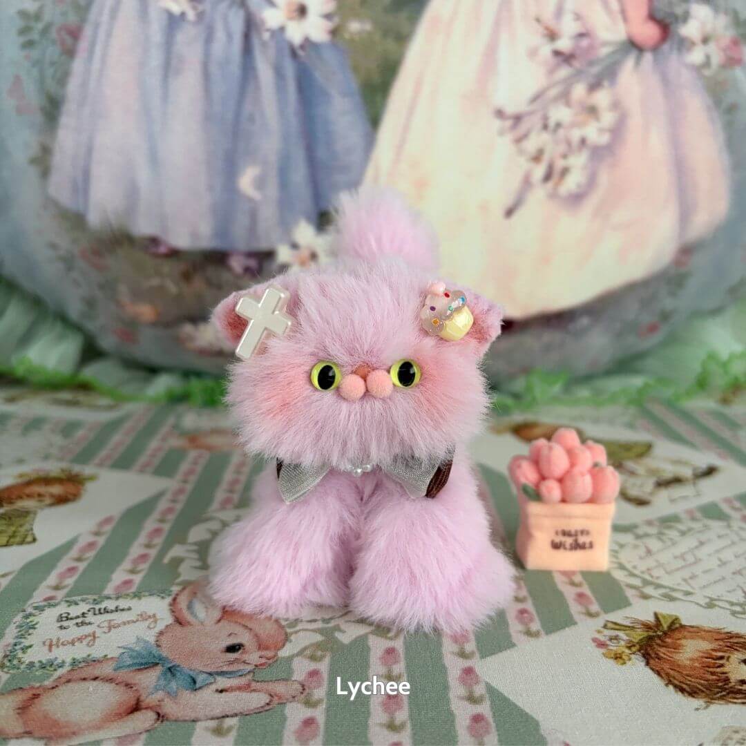 Handcrafted with soft faux fur and a flexible wire core, these tiny kittens wear matching bows and fruit-themed accessories like cherry hats, citrus cheeks, or whipped cream ears. Every kitten is one-of-a-kind, bursting with personality and perfect for gifting, collecting, or simply cheering up your desk.