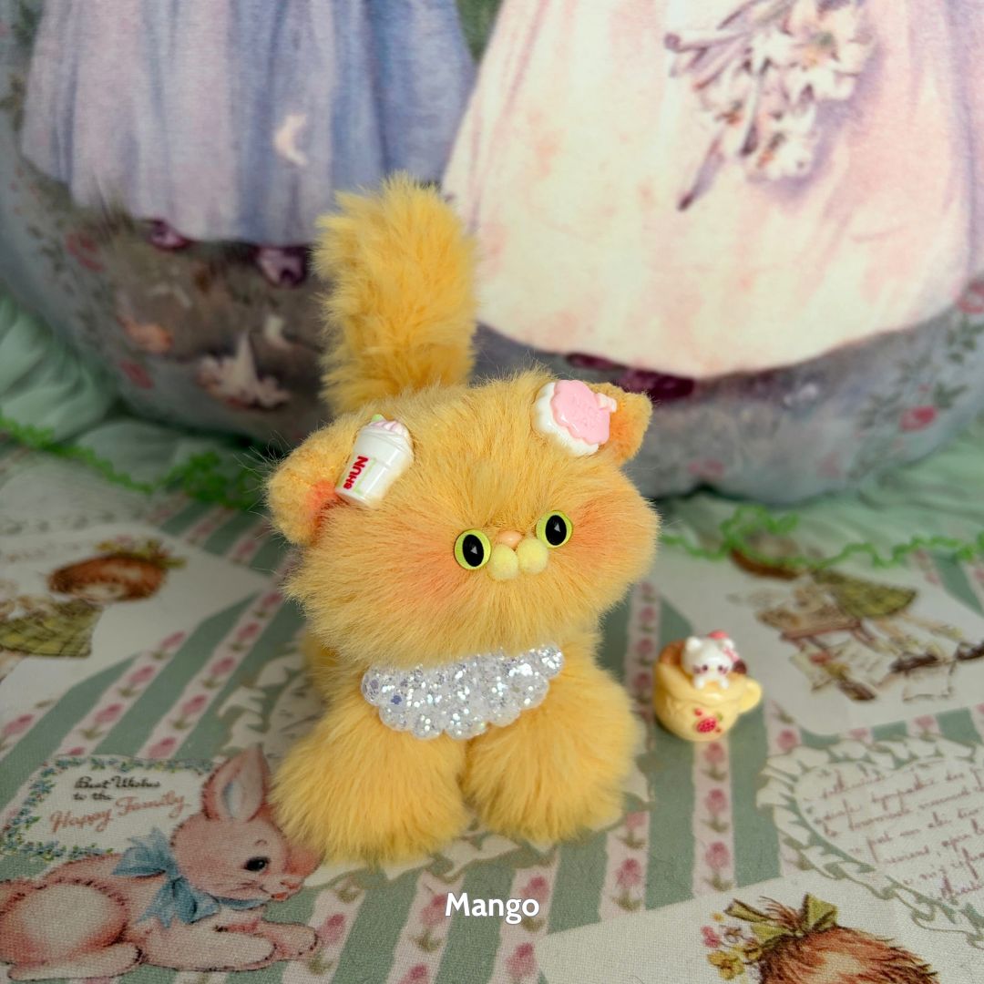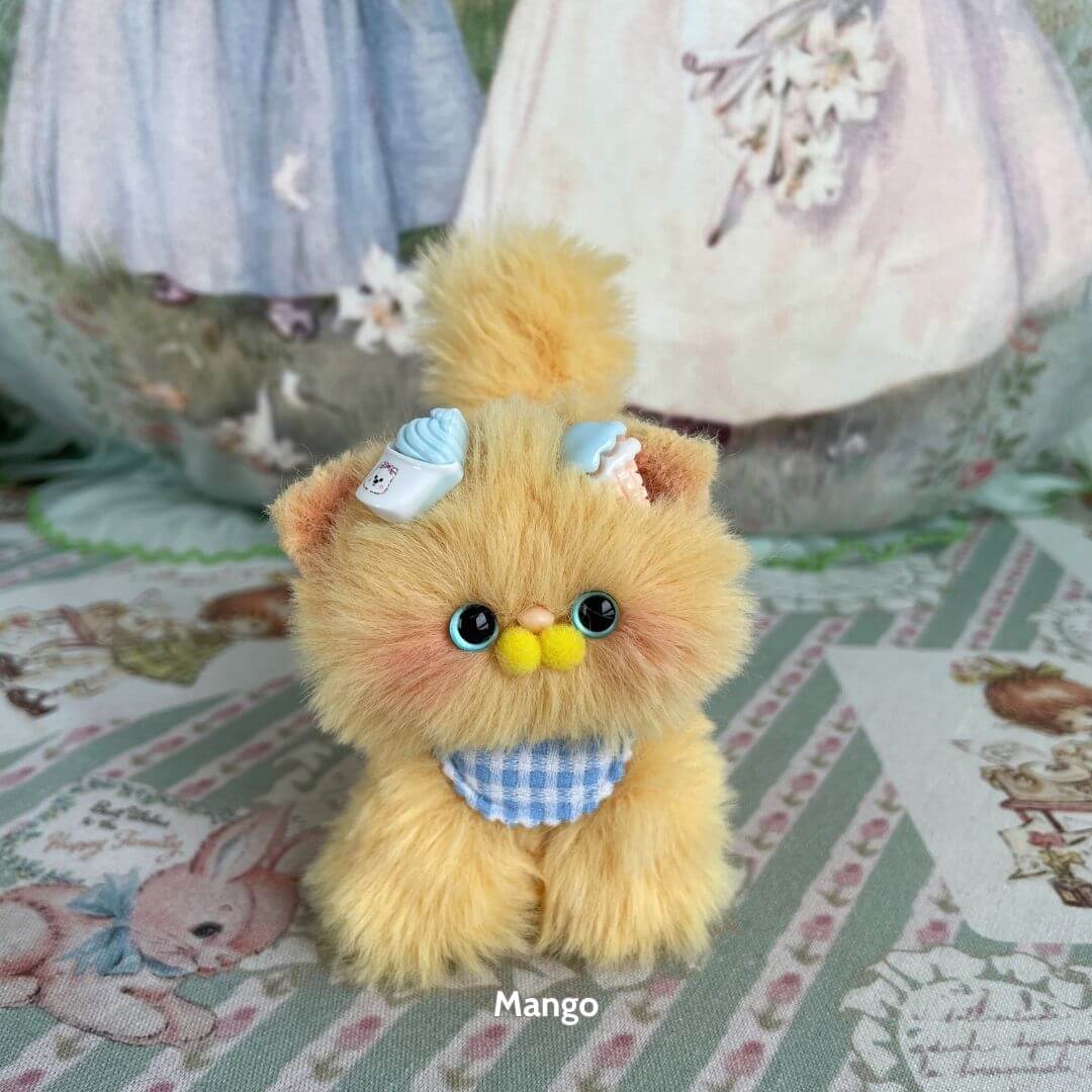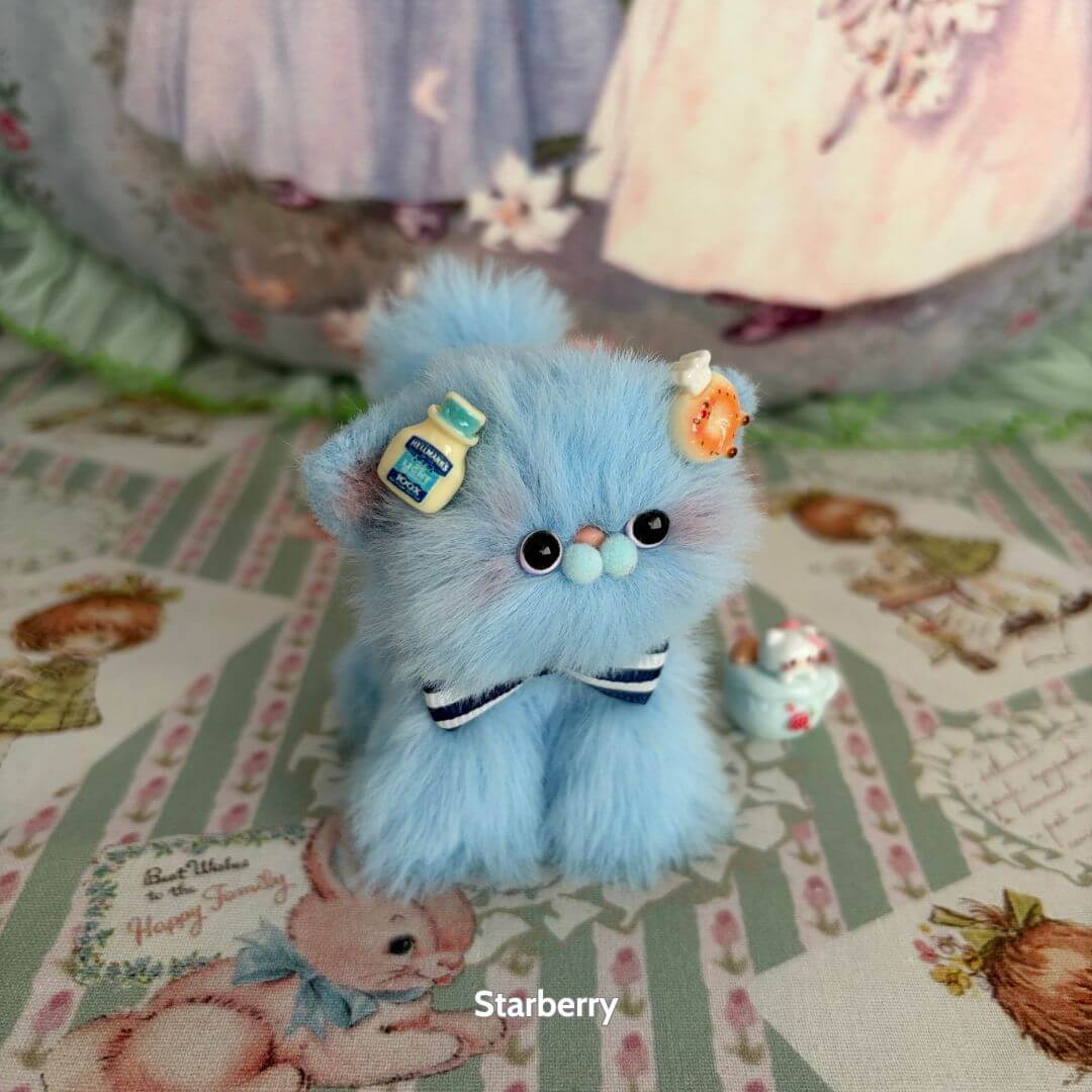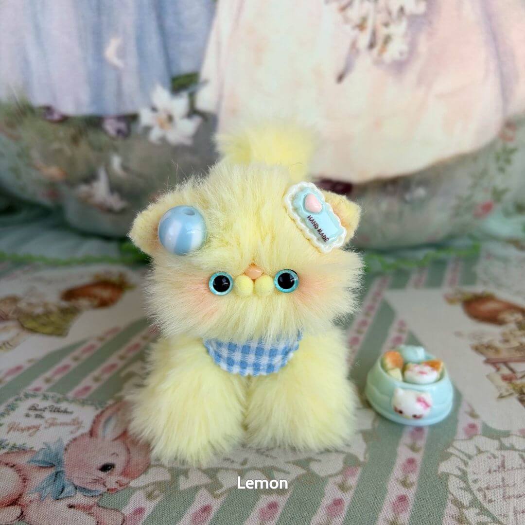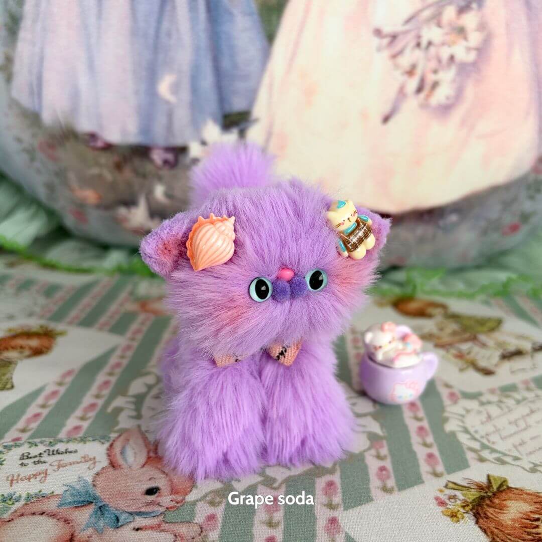 Handcrafted with soft faux fur and a flexible wire core, these tiny kittens wear matching bows and fruit-themed accessories like cherry hats, citrus cheeks, or whipped cream ears. Every kitten is one-of-a-kind, bursting with personality and perfect for gifting, collecting, or simply cheering up your desk.