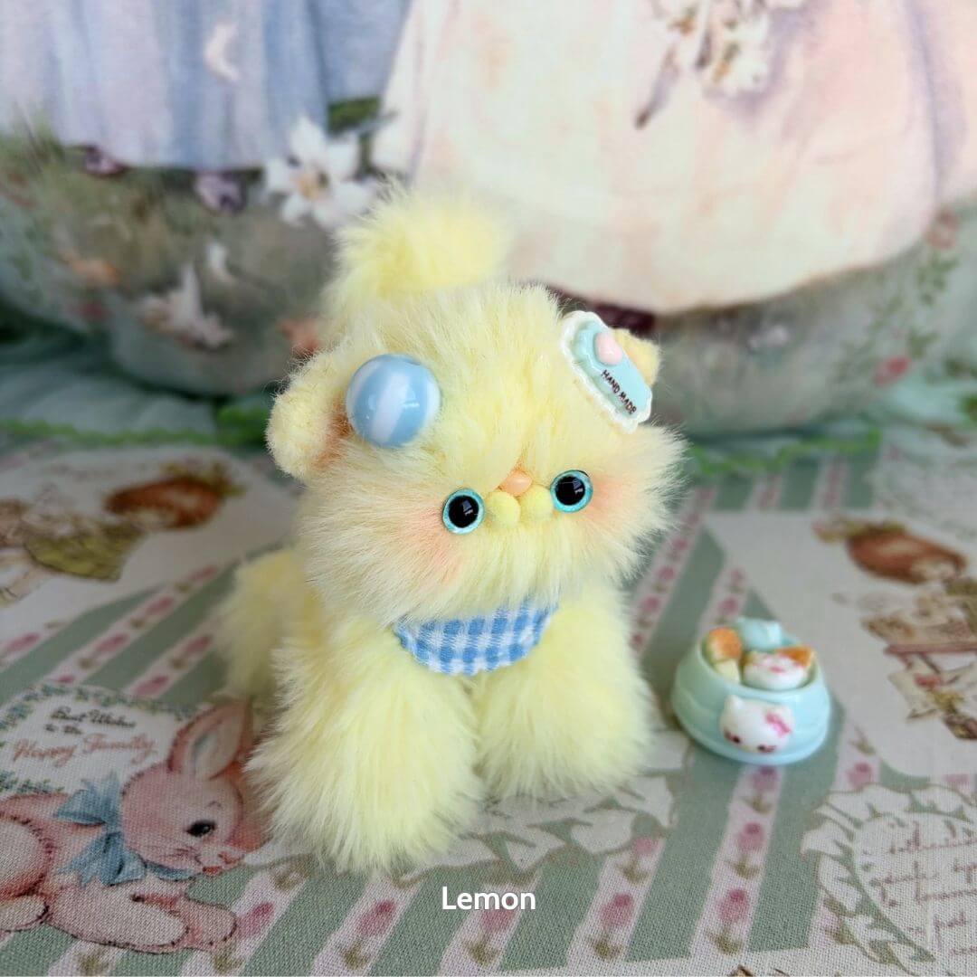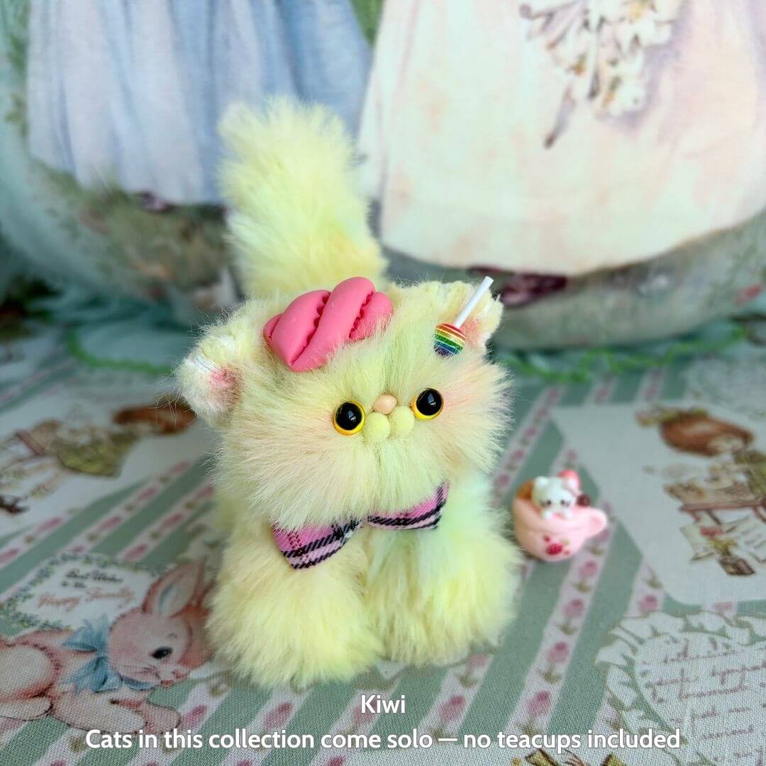 The Fruity Kitten Collection brings together the sweetness of fruit and the charm of handmade miniature kittens. Each kitten is inspired by a different fruit – from strawberry pink to lemon yellow, peachy orange, and minty green.
