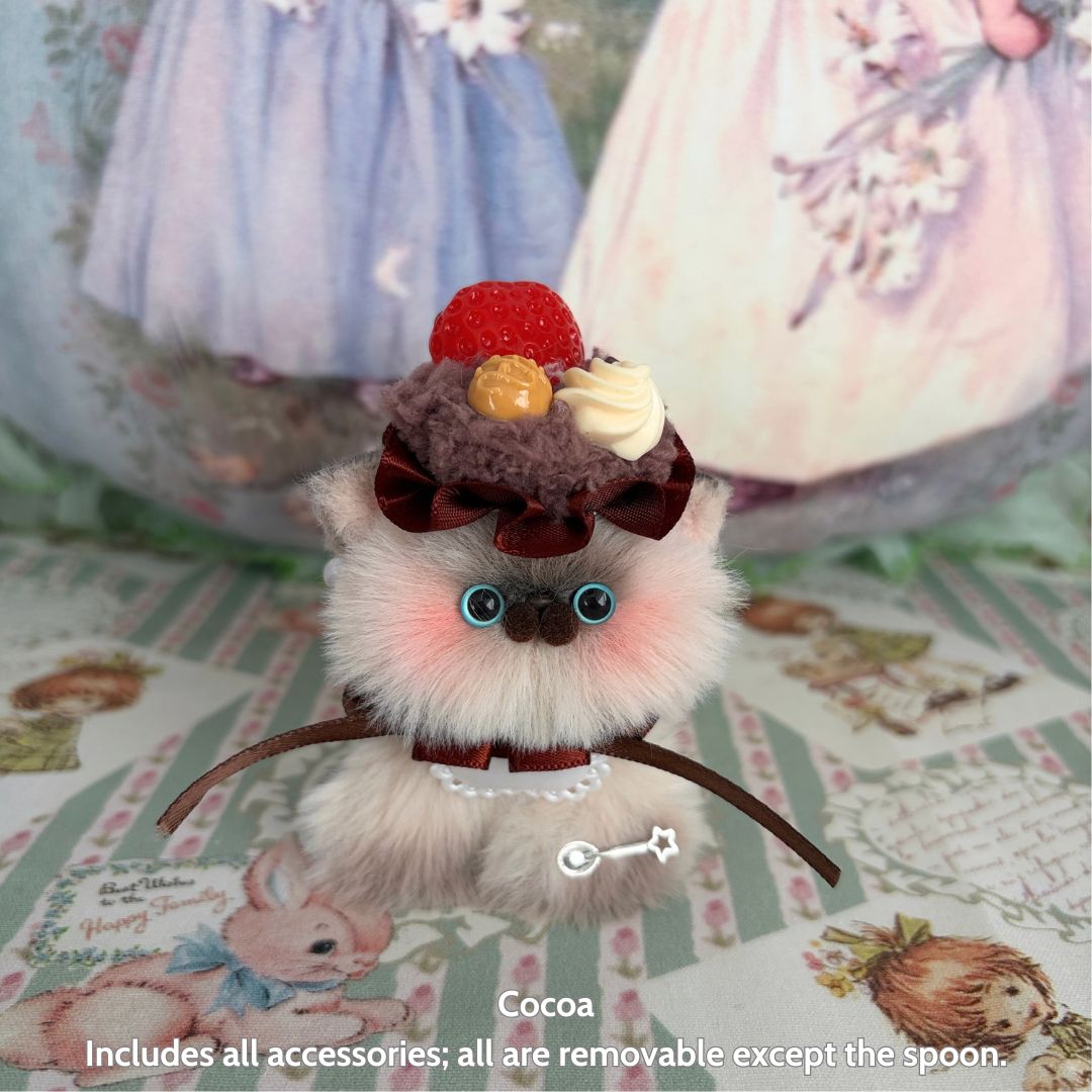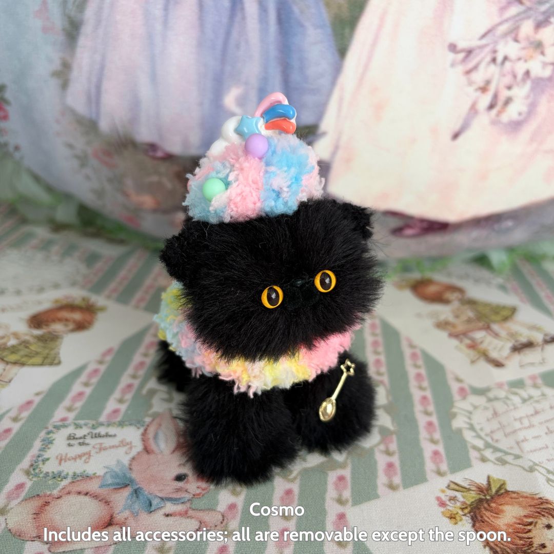 Sweet Treat Kitties are handmade plush kittens inspired by delicate desserts and pastel confections. Each fluffy companion is thoughtfully crafted with soft faux fur, gentle colours, and dessert-inspired details, creating a charming blend of sweetness and comfort. Designed as small companions rather than toys, these kittens are perfect for shelves, desks, and gifting moments that call for something quietly joyful.
